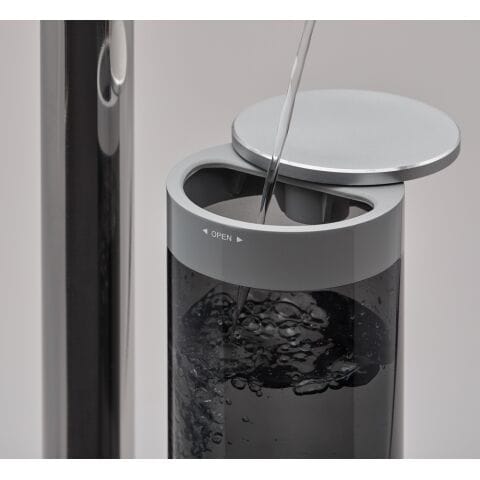 水槽内に特殊な抗菌プレートを搭載。水道水を注ぐだけでカビや細菌を 99.9% 以上※ 除菌するので、水槽内部はいつも清潔。さらにきれいな水がマイクロミストとなって部屋中に降り注ぐことで、「加湿しながら除菌する」という従来の超音波式を凌駕する機能を備えました。