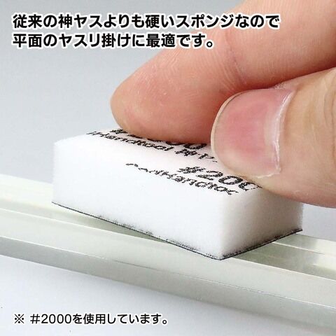 従来の神ヤス! よりも硬いスポンジを採用! 持ちやすい大きさで取り回しやすく、研ぎ出し作業も楽々! 高耐久で破けづらいスポンジだから好きな形にカット可能! 滲みづらいインクにより水研ぎにも使いやすい!