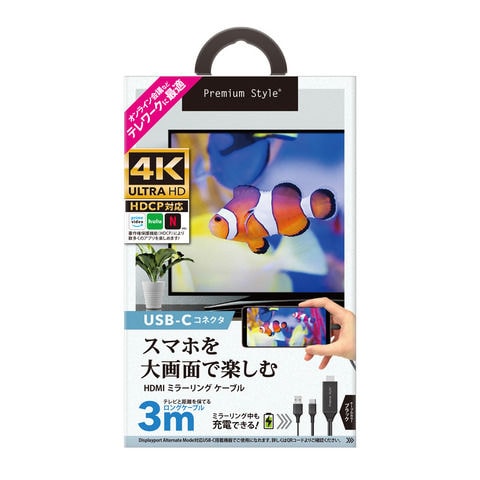 ※著作権保護機能(HDCP)について:端末やTVがHDCPに対応している必要があります。機種やアプリによってはミラーリングができない場合があります。