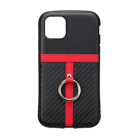 PGA iPhone 11 Pro Max用 ポケット&リング付ハイブリッドタフケース(カーボンブラック) PG-19CPT03BK 【返品種別A】