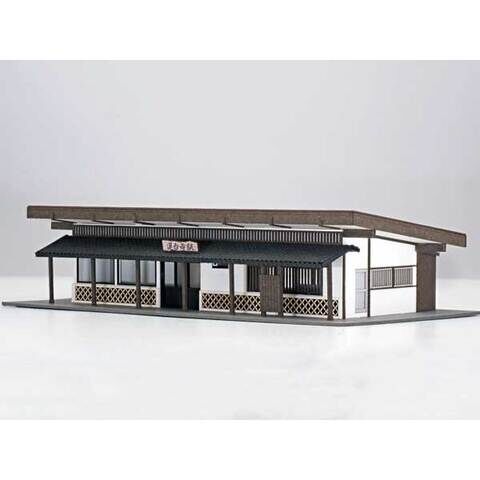 スケール:1/150 (Nゲージ) 商品形態:レーザーカットペーパーモデルキット 材質:着色硬質ペーパー素材 パーツ点数:150点 完成寸法:駅舎部分:W150×D75×H33(mm)