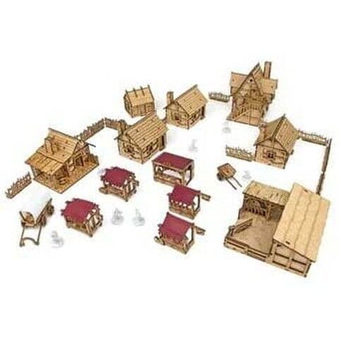 ビレッジは3軒のスモールハウス、1軒のビッグハウス、1軒のスミシー、1軒のステイブル、3軒のストリートマーケット、1軒のバーン、1組のノマドワゴンとカート、そして木柵のセットとなります。