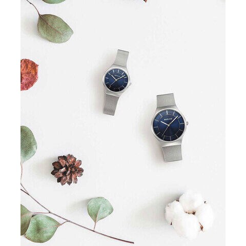 文字盤に海の色を取り入れたネイビーブルーのペア。