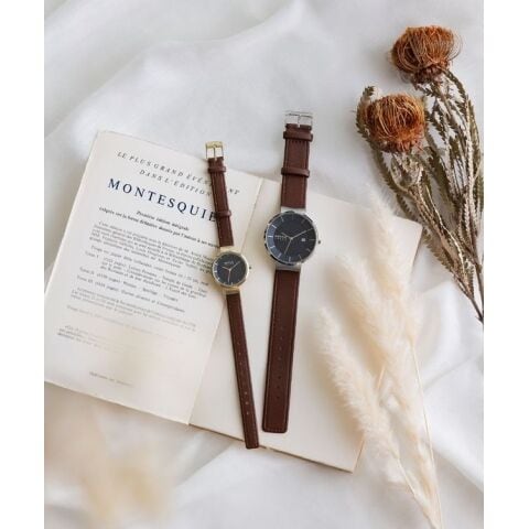 このコレクションは、上品な輝きを放つシャンパンゴールドのケースに、季節のコーディネートにも合わせやいブラウンのレザーストラップ、そして、文字盤は静寂の夜空や、深海を思わせる深いネイビーブルーを採用しました。