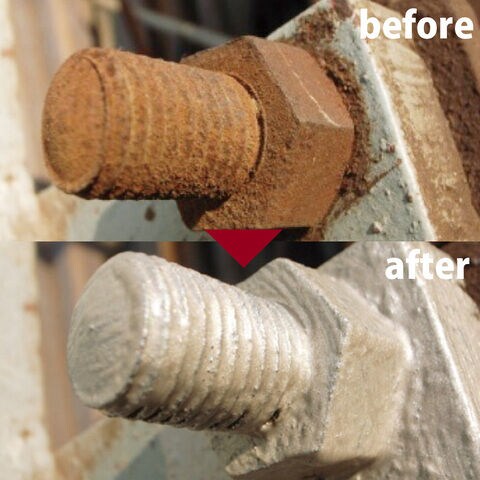 従来のサビ止め塗料はケレン作業(サビ取り)が必須で、それが不充分だと何を塗ってもサビの再発生が防げません。