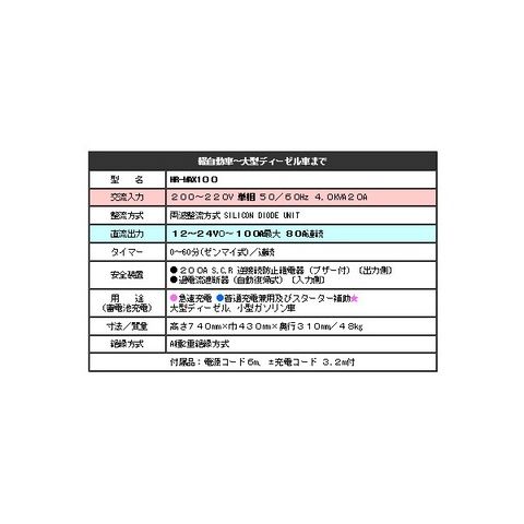 デンゲン 大型急速バッテリー充電器 AC200~220V 単相 50/60Hzエンジン始動 重点型 dengen ハイレートマックス HR-MAX100 【返品種別B】