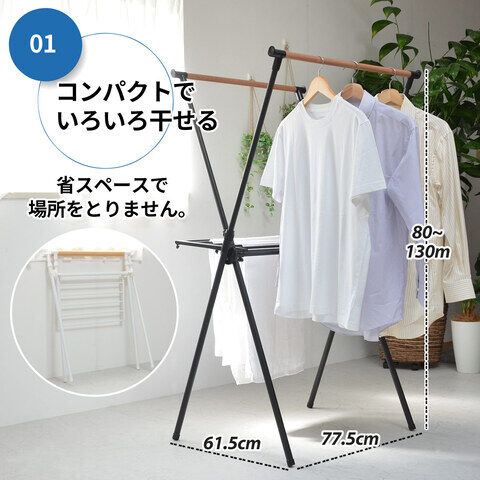 サッと開いてサッとしまえるので、使い勝手のいい物干しです。