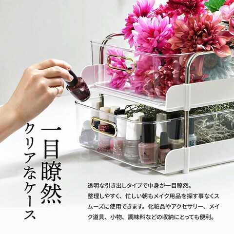 化粧品やアクセサリー、メイク道具、小物、調味料などの収納にとっても便利。