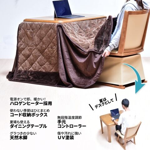 ◆ハイタイプのコタツなので、布団を外せばコタツを使わない季節でも普通のダイニングテーブルとしても使えるので、一年通して使えるコタツ兼ダイニングテーブルとして人気です。