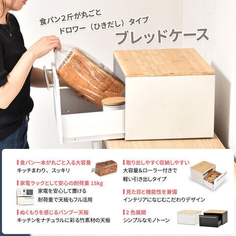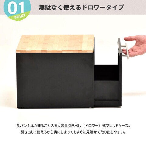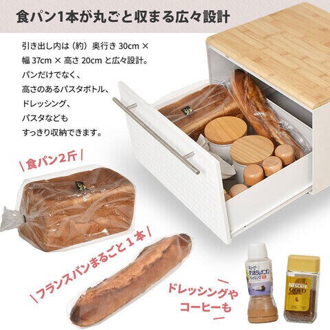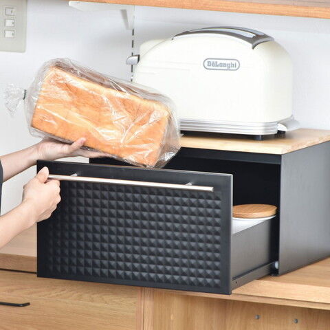 食パン1本がまるごと入る大容量引き出し(ドロワー式)、奥にしまっても見渡せて取り出しやすい。