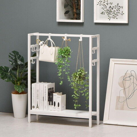 玄関、リビングにも置きやすい、スリムなフック付きマルチ収納ラック。