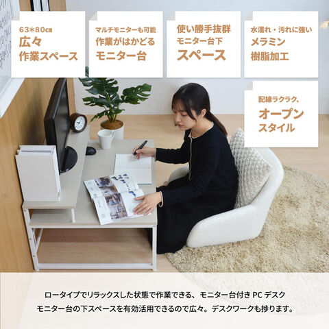 メラミン天板だから、汚れや水濡れにも強く、様々なシーンで対応可能です。
