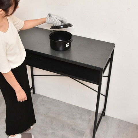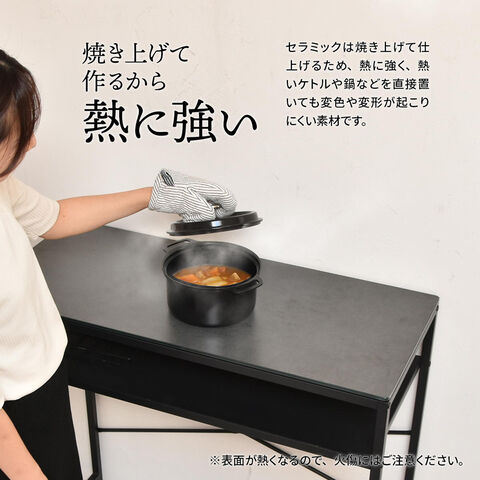 熱に強く、熱いお鍋などを直接置いても変色、変形なく、またキズにも強いので天板をまな板代わりに使ってもキズがつきません。