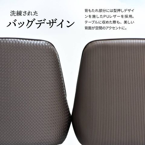背面に柄のデザインされたレザーを使用することで、テーブルに収めた際も美しい背面が空間のアクセントになります。
