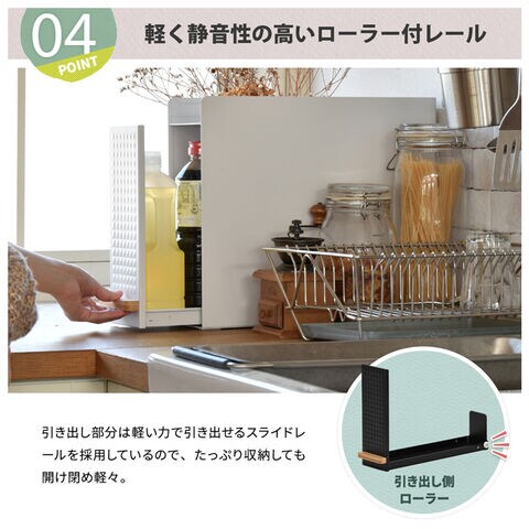 コンロ横スペースに、奥行きがコンパクトなタイプのスライド収納調味料ラック