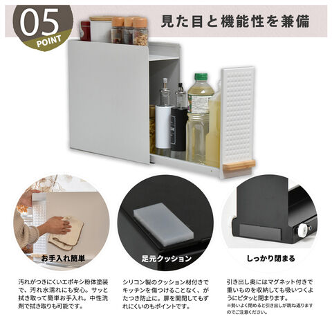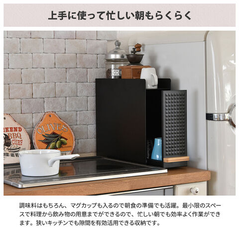 ◆コンロ横スペースに、奥行きがコンパクトなタイプのスライド収納調味料ラック