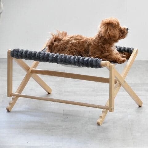 折りたたんで持ち運びのできるペット用のベット。カバーは洗えて、替えられて、長く使えます。