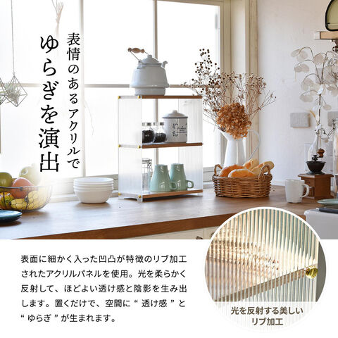表面に細かく入った凹凸が特徴の、透け感のあるリブ加工のアクリルパネルを採用