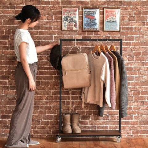お気に入りのTシャツやシャツなどをアート感覚で収納、服を掛けていないときも絵になるハンガーラックです。