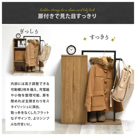 サイドのT字ハンガーはバックを掛けるのにぴったり。大人用のリュックやバックは勿論、ランドセルだって掛けれます。