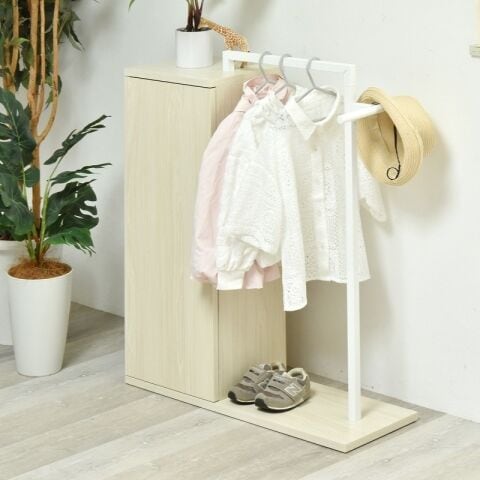 - 素材:【天板・棚板・側板・底板】中質繊維板にメラミン貼り 【ハンガーフレーム】スチールパイプ(粉体塗装)