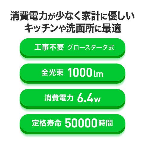 - 全光束:1000lm (直管蛍光ランプ20W形相当)