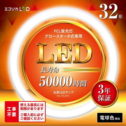 エコリカ 丸型LEDランプ 32形相当(電球色相当) ecorica FCLシリーズ ECL-FCL32YL 【返品種別A】