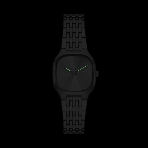 洗練されたモダンなデザインに仕上げたシルバートーンのステンレススチールウォッチ。存在感が際立つアイテムです。丸みのある28mmのスクエアケースに三針ムーブメントを搭載し、サンレイダイヤルを組み合わせました。