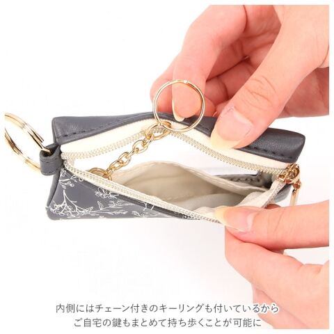 内側にはチェーン付きのキーリングも付いているから、ご自宅の鍵もまとめて持ち歩くことが可能に。