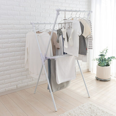 ◆通気性の良い段違い設計、省スペースで効率良く干せます。