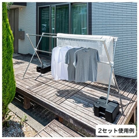 ◆クロス型布団干しなどの斜め支柱の屋外物干しの転倒防止対策や日除けシェードの設置に、安定性と使いやすさを両立した重し。