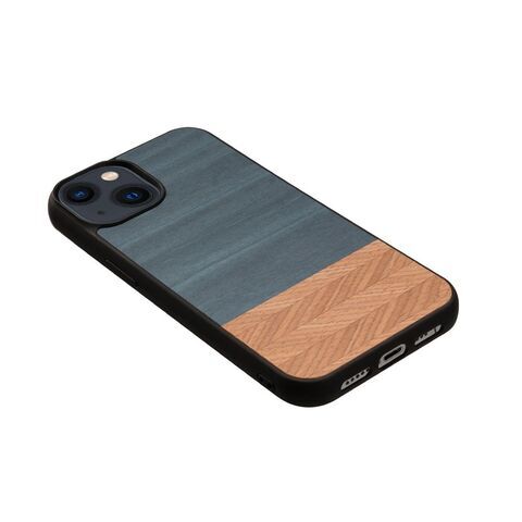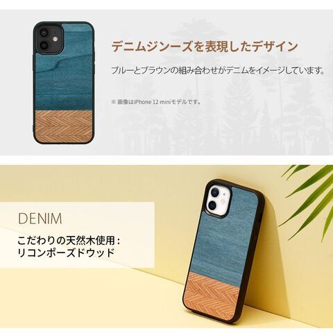 Man&Wood iPhone 14用 背面カバー型 天然木ケース(Denim) I23623I14 【返品種別A】