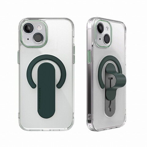 MOMO STICK iPhone 15 Plus用 Mag Grip レンズガード一体型クリアケース(ダークグリーン) MMS25319I15PL 【返品種別A】
