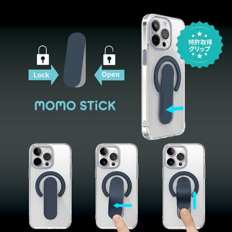 ◆特許取得「MOMO STICKグリップ」の独自形状で安定的に固定でき、使っていない時はスリムになります。