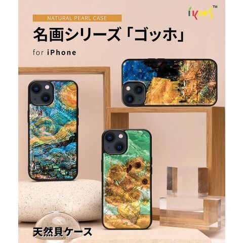 ◆ikins(アイキンス)の「天然貝ケース ゴッホシリーズ」は、天然の貝と「ゴッホ」の作品を組み合わせた煌びやかなケースです。