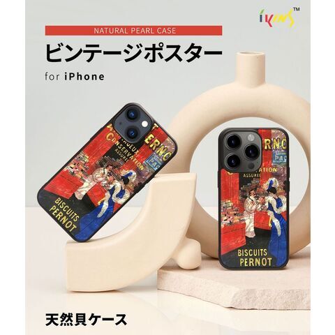 ikins(アイキンス) iPhone15(6.1inch/2眼)用 天然貝ケース(ビンテージポスター) I25466I15 【返品種別A】