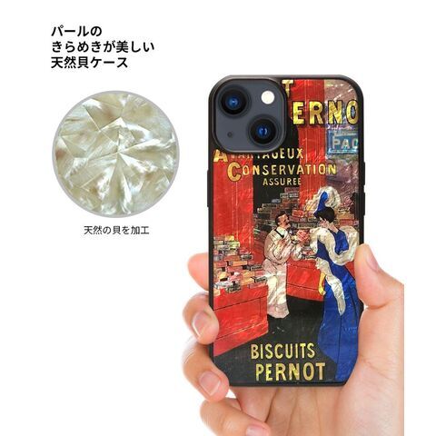 フランスのビスケット店のために描かれた、ビンテージな広告ポスターがiPhoneケースになりました。天然貝を組み合わせることによって色鮮やかなアートポスターを表現するデザインです。