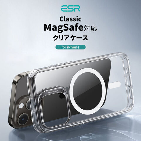 ESR「Classic MagSafe対応クリアケース」は強力な磁石を搭載しMagSafe対応アクセサリがスムーズに吸着するクリアケースです。