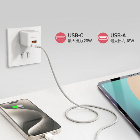 USB-Cポートから20W、 USB-Aポートから18Wの出力が可能で、2ポート同時使用時には最大15Wを分配します。