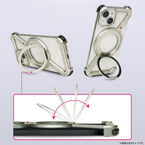 ケース背面には、マグネット搭載・360°回転するリングがビルトインされています。