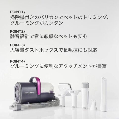 ◆これ1台でおうちグルーミングが快適になる次世代5-in-1バリカン掃除機。