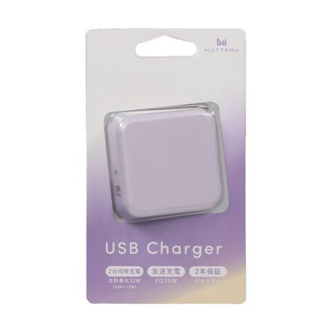 MOTTERU (モッテル) AC充電器 PD35W出力対応 USB-C+USB-A(ペールアイリス) MOT-ACPD35WU1-PU 【返品種別A】