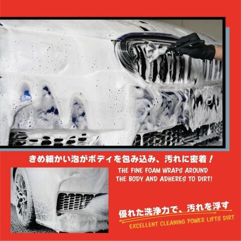 5.洗車後は泡が無くなるまで水でよく洗い流し、ボディに残った水滴はキレイなタオル等で拭き取ってください。
