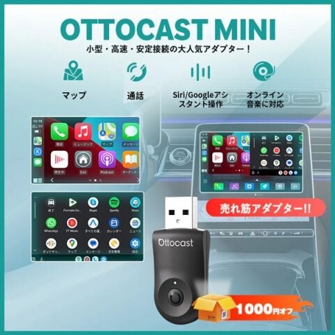 ◆Ottocast Mini は、車載の有線Apple CarPlayやAndroid Autoをワイヤレスに変換する小型のアダプターです。