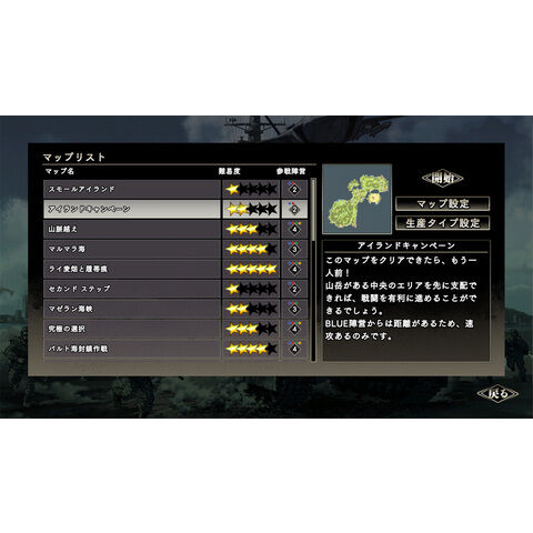 マップに参戦する陣営の軍資金や同盟関係などを自由に設定することで、同じマップでも違った状況を楽しむことができます。