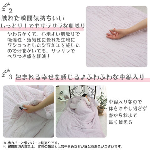 ◆表面がくしゅくしゅなので肌への貼り付きをおさえベタつき感を軽減♪エアコンと併用することで冷感がアップ!