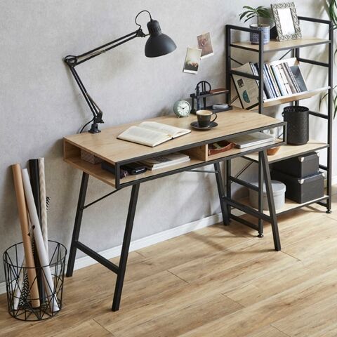 後藤家具物産・大川リビング木工社 ブラックアイアンと古木風3Dシートのモダンな幅110cmの収納付きデスク KD-LOLLY-110SD 【返品種別A】