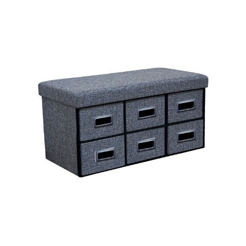 ◆幅76cmのベンチスツールは6杯引出しで大容量の収納可能。