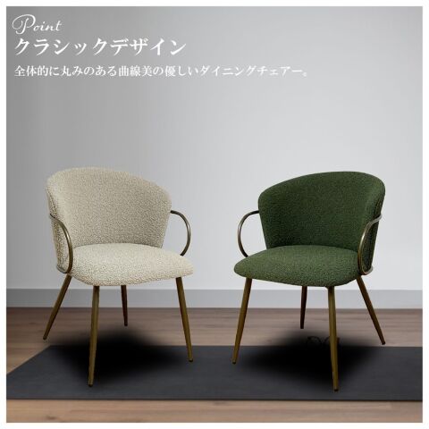 ◆クラシックデザインで全体的に丸みのある曲線美の優しいダイニングチェアー