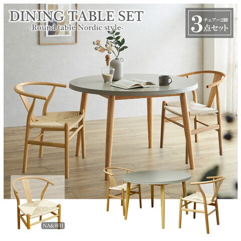 後藤家具物産・大川リビング木工社 幅110cmコンクリート調円卓ダイニング3点セット(チェアーナチュラル&ホワイト) 【他商品との同時購入不可】メーカー直送品(沖縄県・離島はお届け対象外となります) VT-01-CN-EN-3-NAWH 【返品種別B】